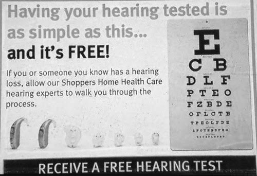 The big hearing aid is for the big E. The little hearing aid is for the last line.